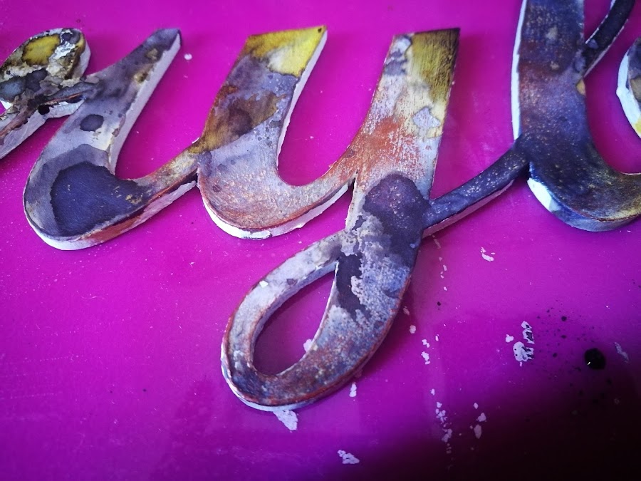 la clase/reto consiste en crear un soporte con letras de madera, y aprovechando que tenia por aquí mi nombre esperando a ser tuneado, pues aproveché de una vez y me lie al guarreo
