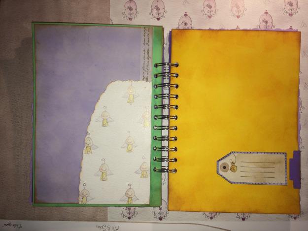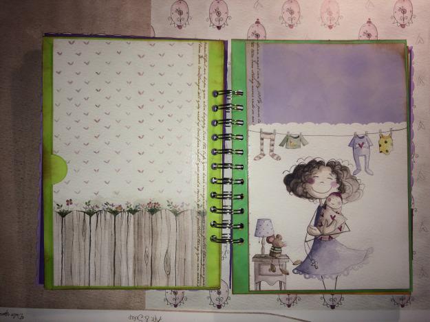 Mezcla scrapbooking en las páginas interiores (con bolsillos y solapas para guardar cosas y una libreta para que sirva de diario) con tapas en goma EVA, y eso es algo que me encanta, porque me permite jugar con muchos de los materiales que me gustan.