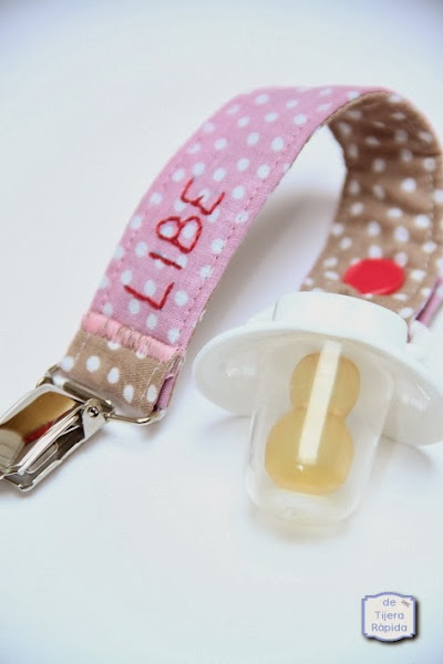 Y el chupetero con las mismas telas a juego. Como siempre le he puesto un snap para sujetar el chupete. Dentro de nada tendré que hacer un nuevo pedido, ya se me han acabado algunos de mis colores favoritos.