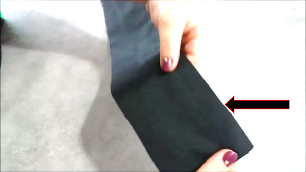 Marcamos ahora la pieza de la cremallera de la misma forma: doblamos a la mitad y hacemos una marca arriba y abajo.