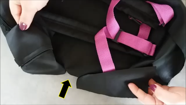 y hacemos coincidir ésta marca con la de arriba de la mochila, de ésta forma: