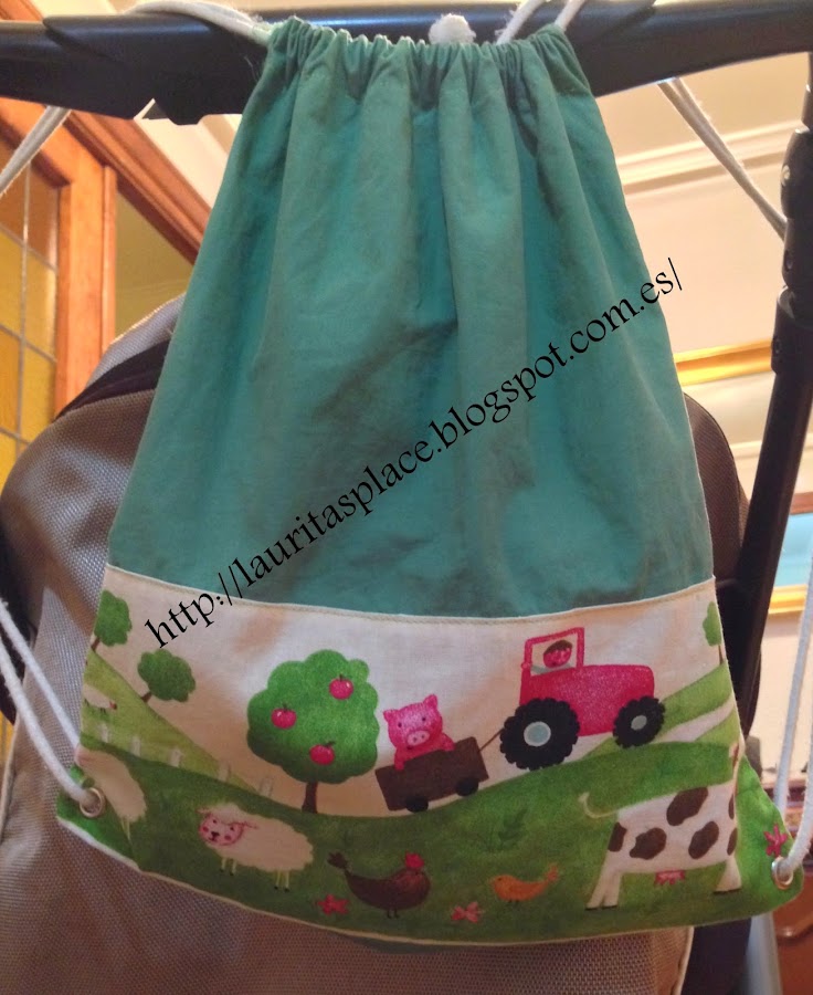 Es muy sencilla de hacer, y con el añadido de esta cenefa tan bonita... normalmente la utilizamos para ir a la guardería, aunque también la hemos utilizado para la merienda, para la playa, y para llevar los juguetes al parque. La hemos más que amortizado.