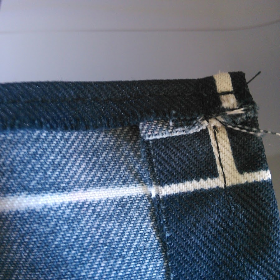 Ahora corta dos cuadrados de 10x10 cm que harán de trabillas de tu mochila, dóblalas a la mitad y pasa un pespunte normal y te quedará así:
