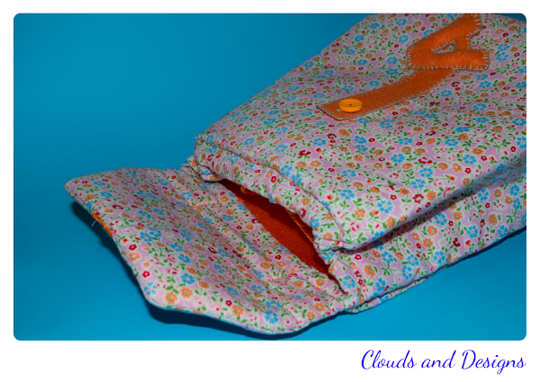 Está toda hecha de tela, con una base de tela de disfraz acolchada para que sea más blandita, el patrón lo encontramos en una de las tropecientasmil revistas que tiene mi madre guardadas, aunque le hicimos unas cuantas modificaciones, y creo que ha quedado bastante cuqui.