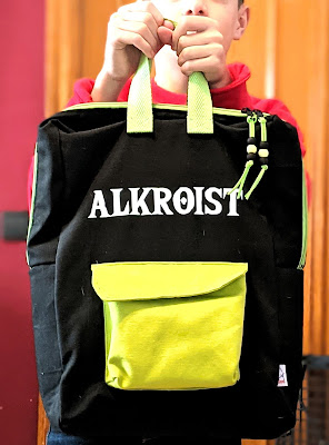 El bolsillo exterior cierra con dos snaps, y el protagonismo de la mochila se lo lleva el vinilo textil, con el nick de mi peque (que ya no es tan peque y además es Youtuber con tres canales propios...)
