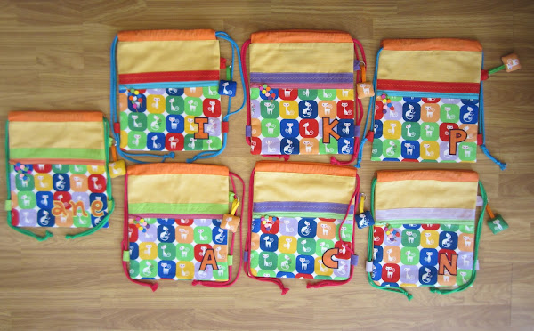 ¡Ah! Y así es como quedaron las 7 mochilas juntas. Cada una con una combinación de colores diferente? ¡¡a que molan!!