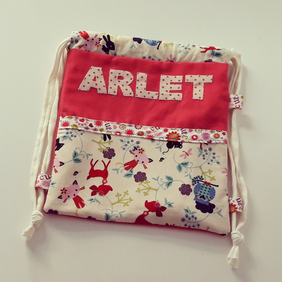Aquí va una mochila para el cole que le cosi ARLET con esta tela tant divertida y personalizada con su nombre.