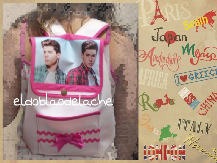 Esta es la mochila que le he hecho a mi sobrina. La idea del modelo la cogí del blog elrincondefrifri, y la modifique al gusto de mi sobrina de nueve años. Por supuesto el personaje para esta mochila no podía se otro que " Gemeliers".