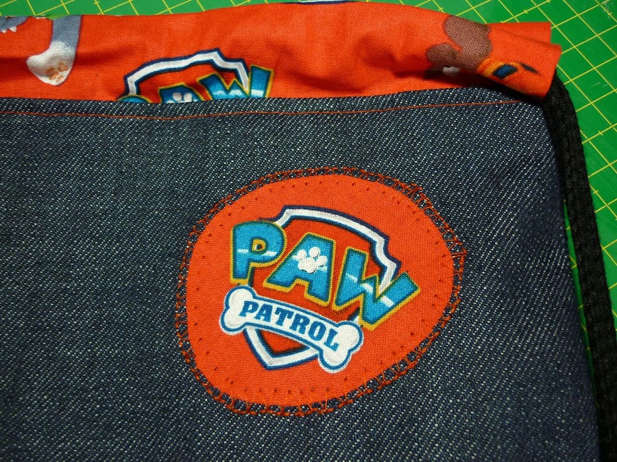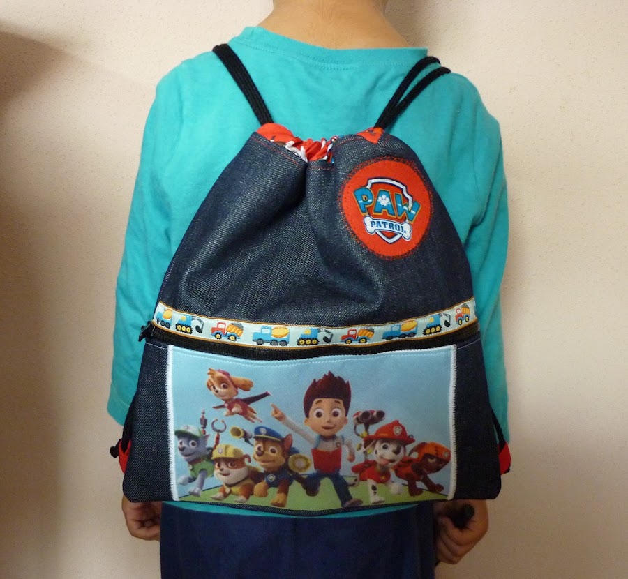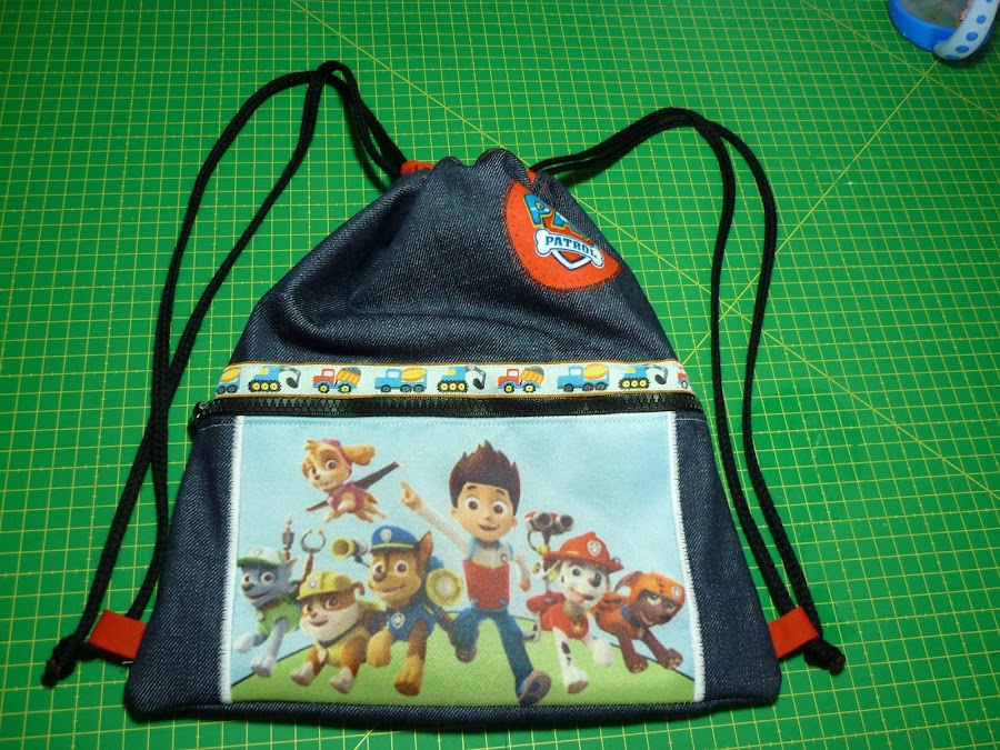 Hoy una entrada rapidita con una costura recién salida de la máquina. La semana pasada la mamá de un amigo de mi hijo me pidió que le cosiera una mochila de tela para el cole. La única característica ineludible es que fuera de la patrulla canina. En el resto de opciones me dio libertad total. Pues no veáis qué difícil estuvo encontrar telas de los dichosos dibujos. Señores diseñadores de telas, La Patrulla Canina arrasa entre los niños!!!! Diseñen más telas!!!! Y que aparezca Ryder!!!!