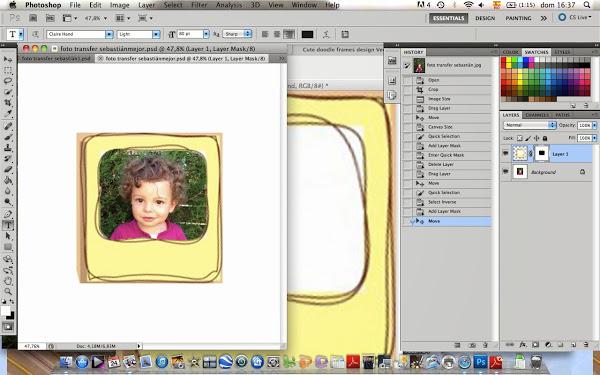 Lo primero que hice fue elegir la foto. Luego conseguí la imagen de un pequeño marco bonito. Utilizando un programa de imágenes (Photoshop, en mi caso), puse la foto dentro del marco,