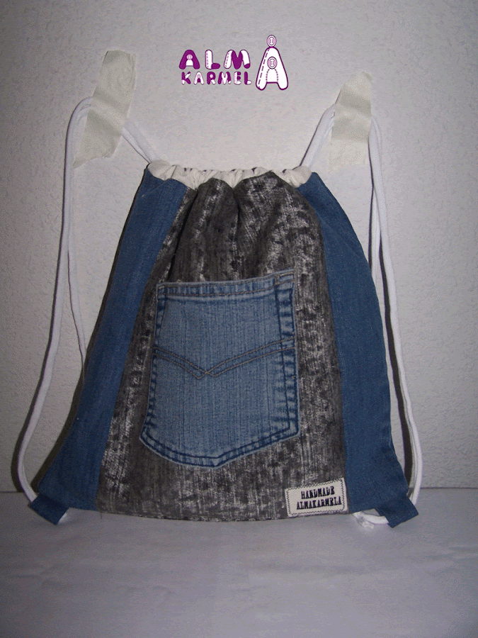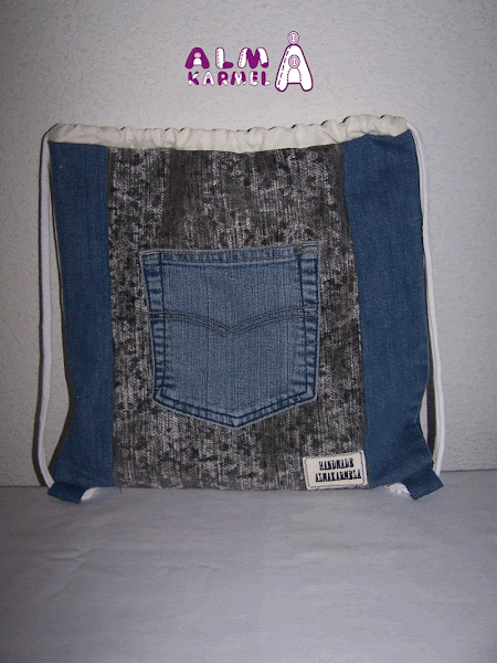 Y aunque yo pienso que para los colores no hay edad...le diseñamos una mochila muy original, y ya que la quería par ir de sport, qué mejor que combinarla con tela vaquera.