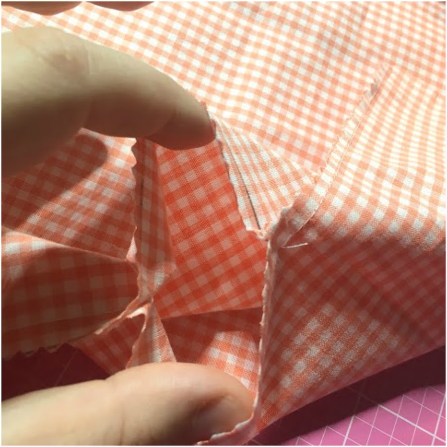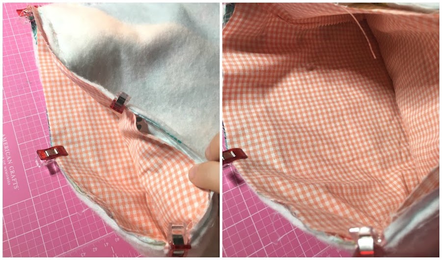 Ahora vamos con el forro que teníamos cosido. Le damos la vuelta y sacamos bien las dos esquinas.