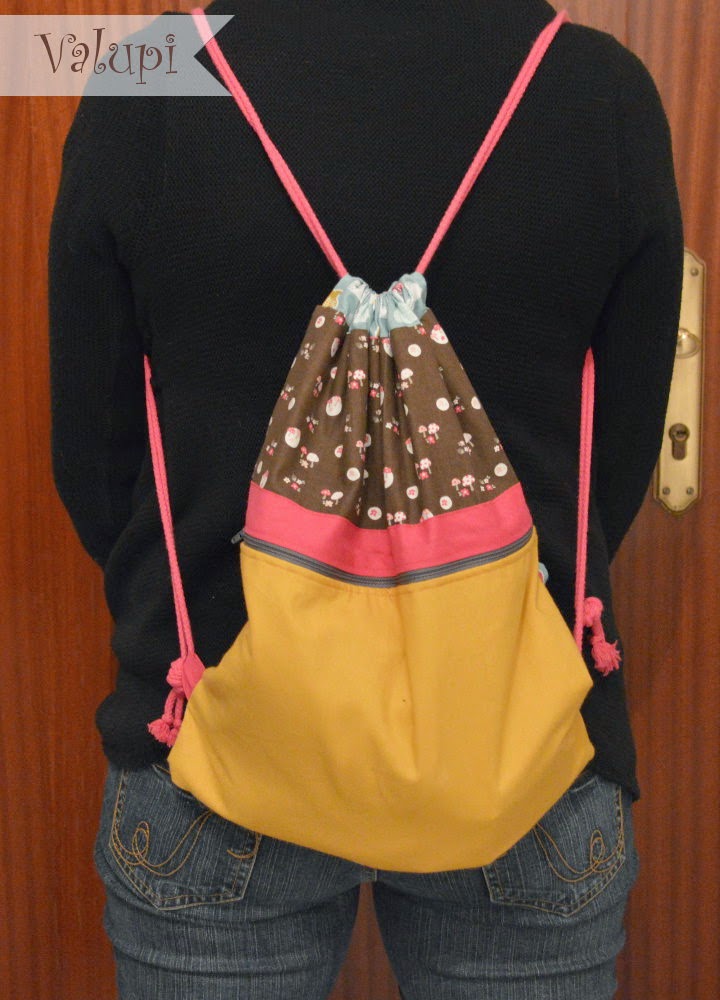 Aunque no participáramos, nos asomábamos casi todas las semanas y nos ha servido para conocer a un montón de blogs geniales. Uno de ellos fue Pandielleando, del que hemos sacado la idea y el tutorial para coser esta práctica mochila saco. Durante esta semana ya nos hemos hecho inseparables, mirad que bonita queda puesta :).