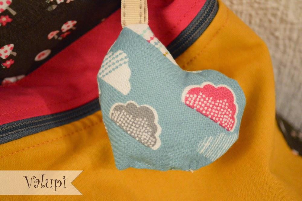 Las telas que hemos usado las hemos comprado en diferentes sitios. La marrón, amarilla y el forro interior son de dos tiendas del barrio (Acerico y Pontejos) y la de las nubes es de Mummy Crafts.