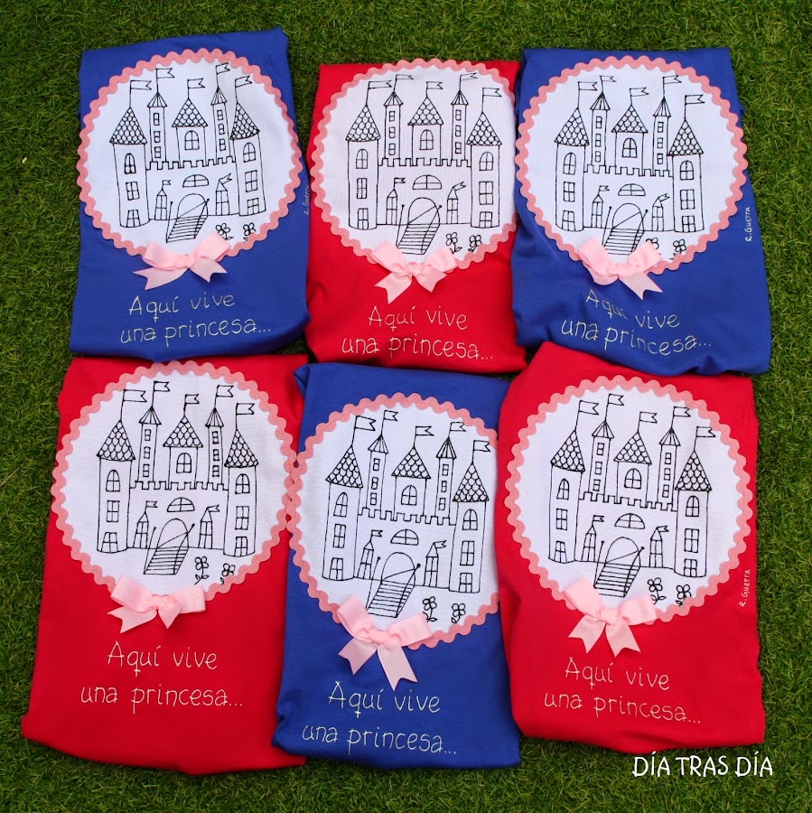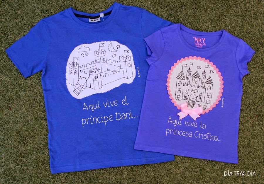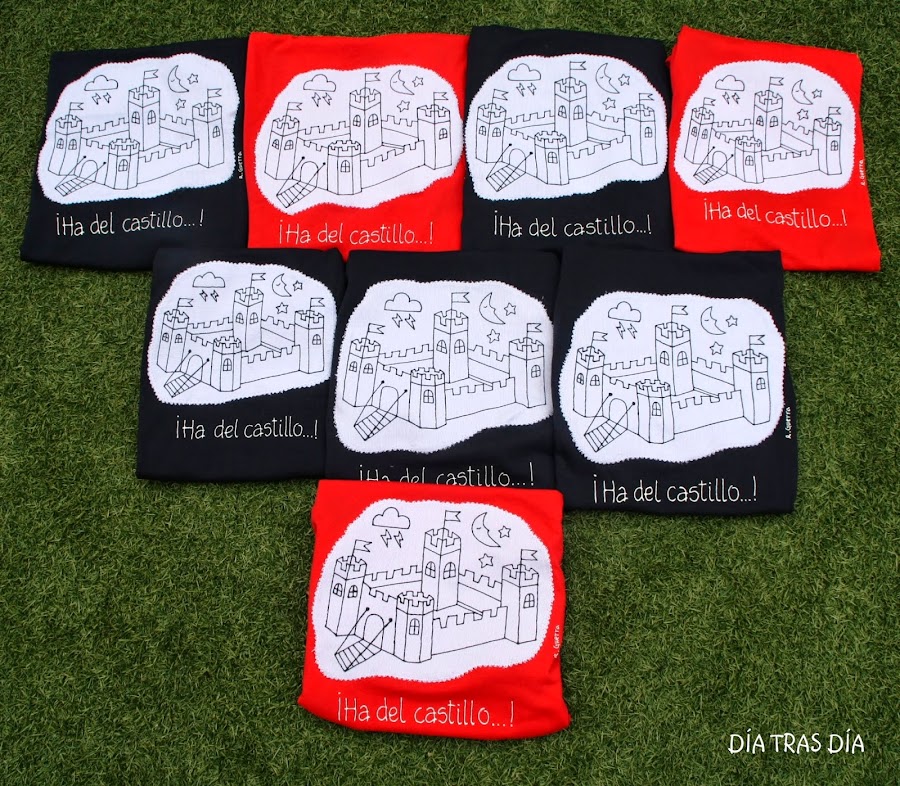 Después de dar varias vueltas entre todos a la idea de qué hacer en ellas, me dijeron que les gustaba la idea de las camisetas "Pequeños artistas", con el modelo de castillos, en su versión para chicos y chicas. La razón fue que durante el curso habían estado estudiando la temática de los castillos y