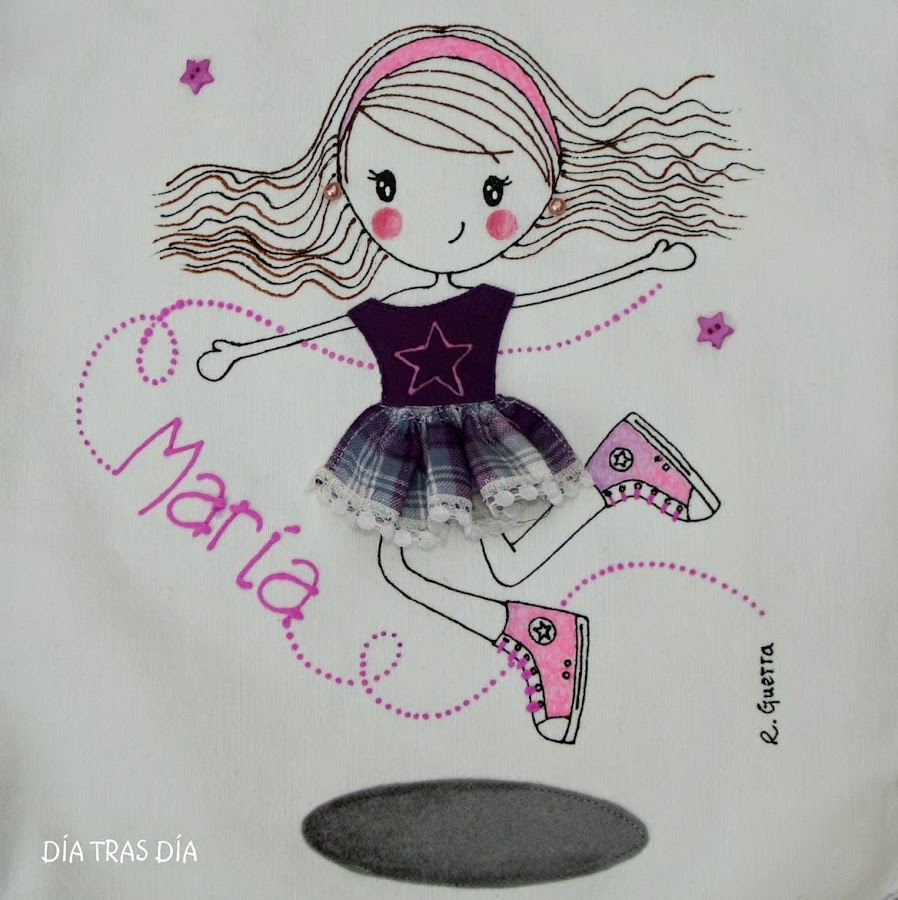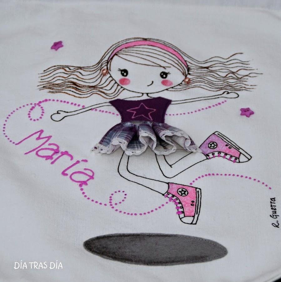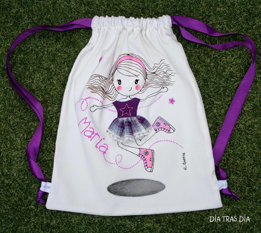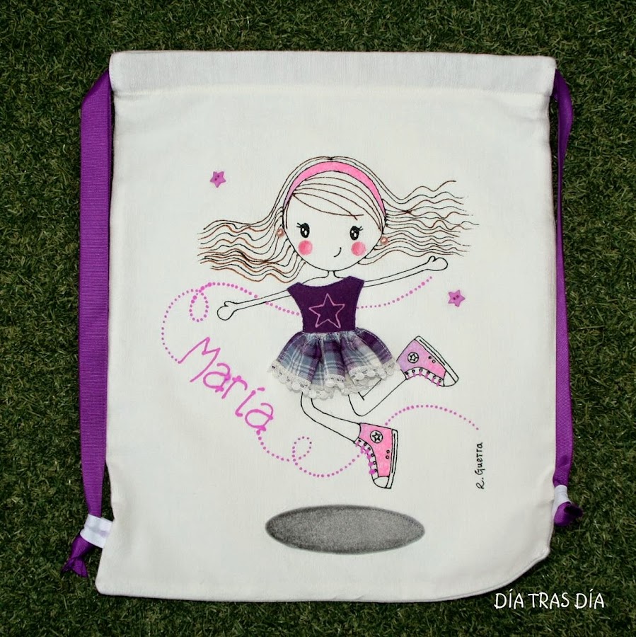 Y las dos mochilas que quedan han sido modelos totalmente novedosos. La primera de ellas, ha sido realizada para María, una chica a la que le encanta bailar y asiste a clases de hip hop. Así que he intentado hacer una versión de Ro-ro que se pareciese a ella, haciendo uno de sus bailes. Y este ha sido el resultado: