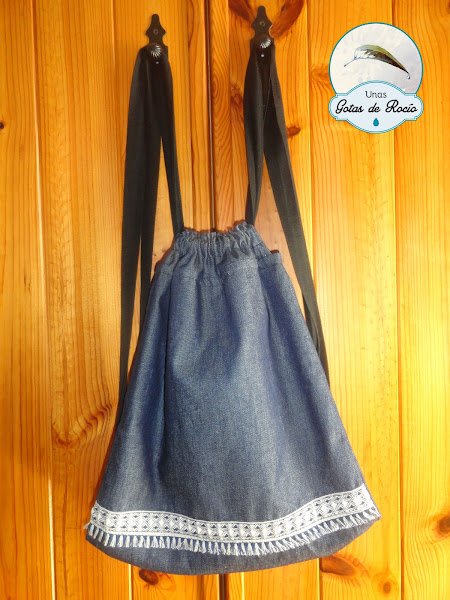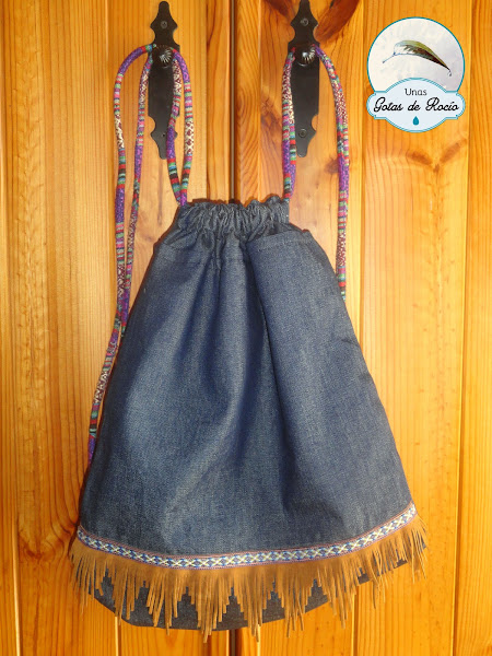 En la siguiente mochila he combinado distintas telas vaqueras, como hago a menudo.