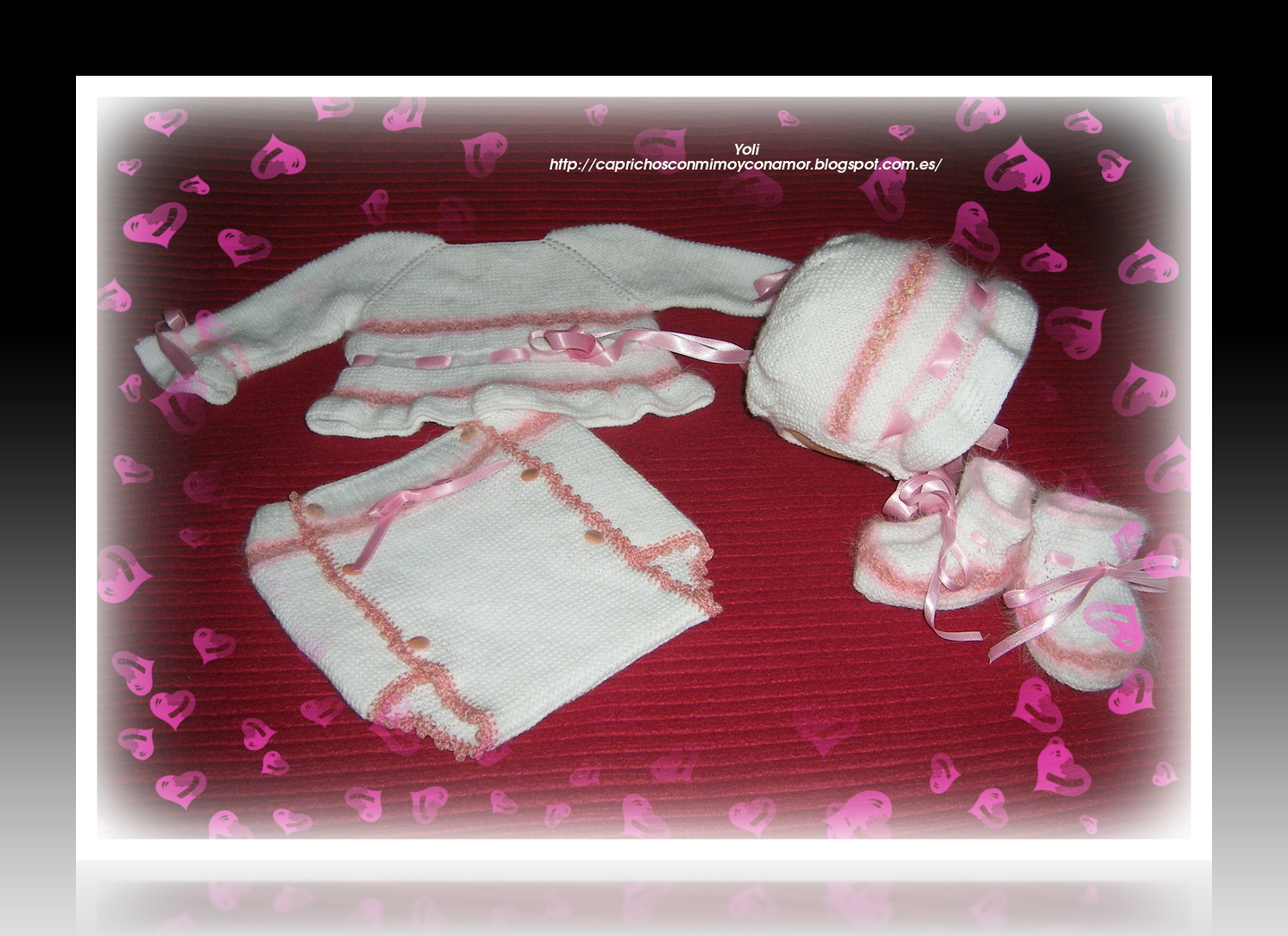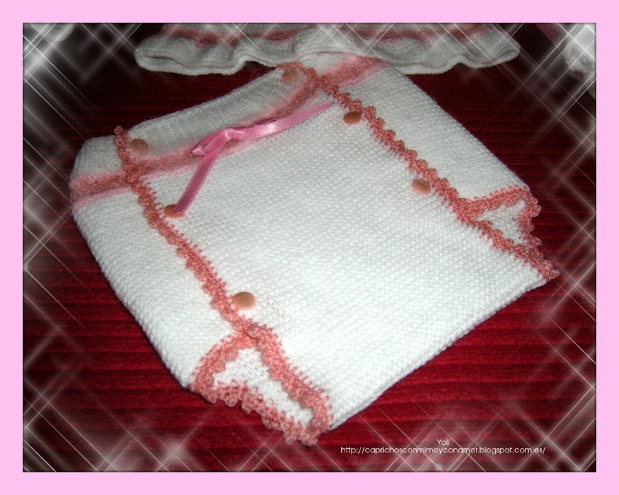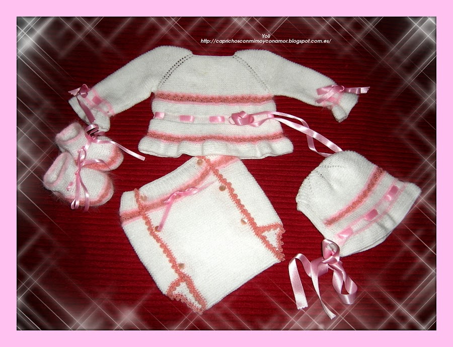 Cuatro piezas, jersey, capota, cubrepañal y patucos, bien completo no os parece?