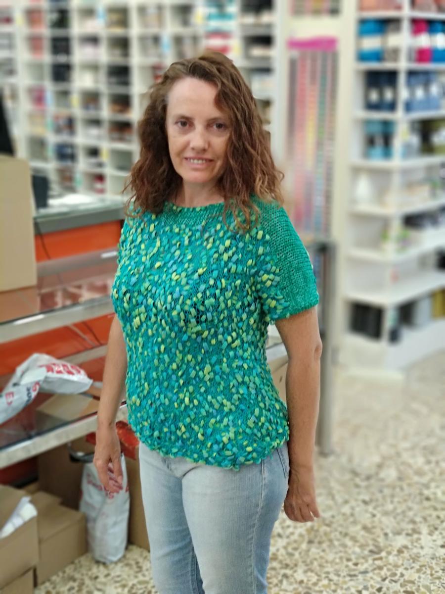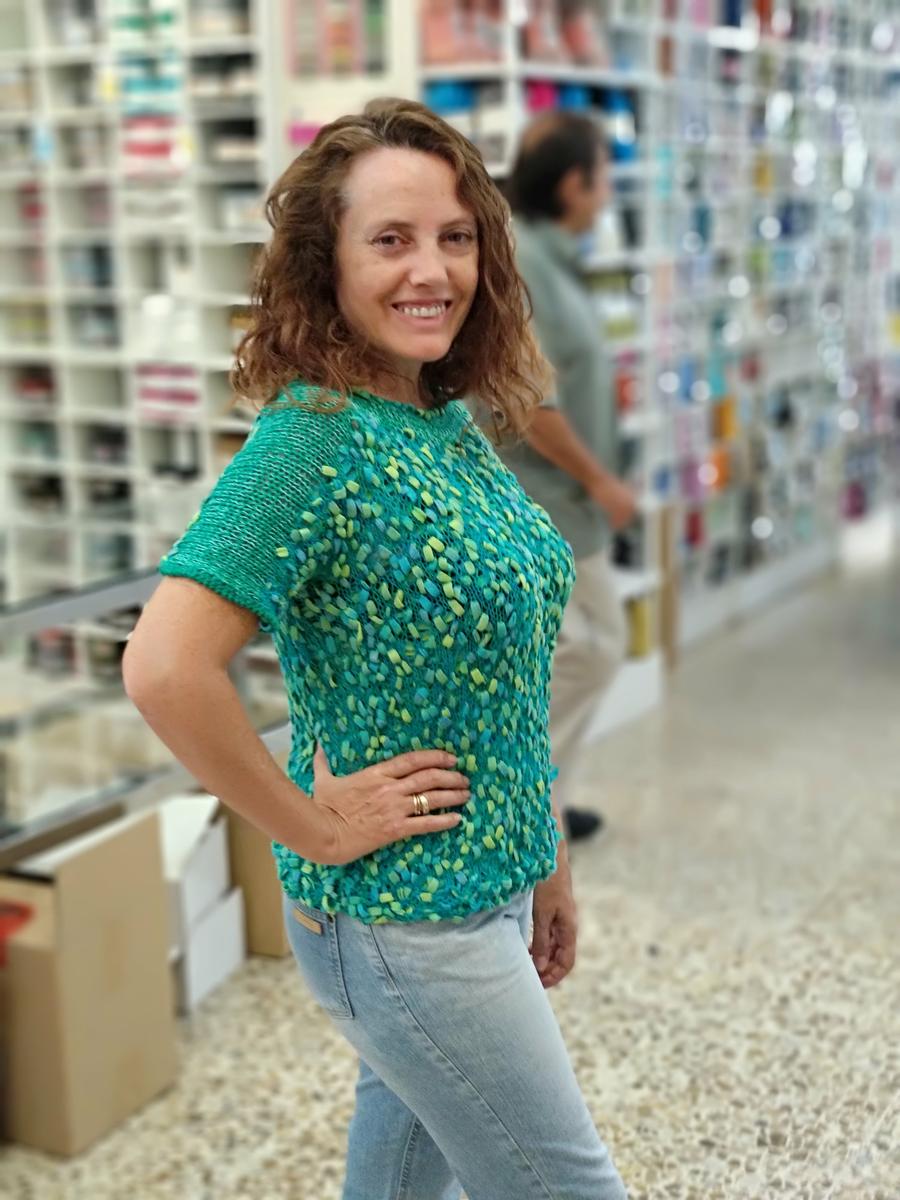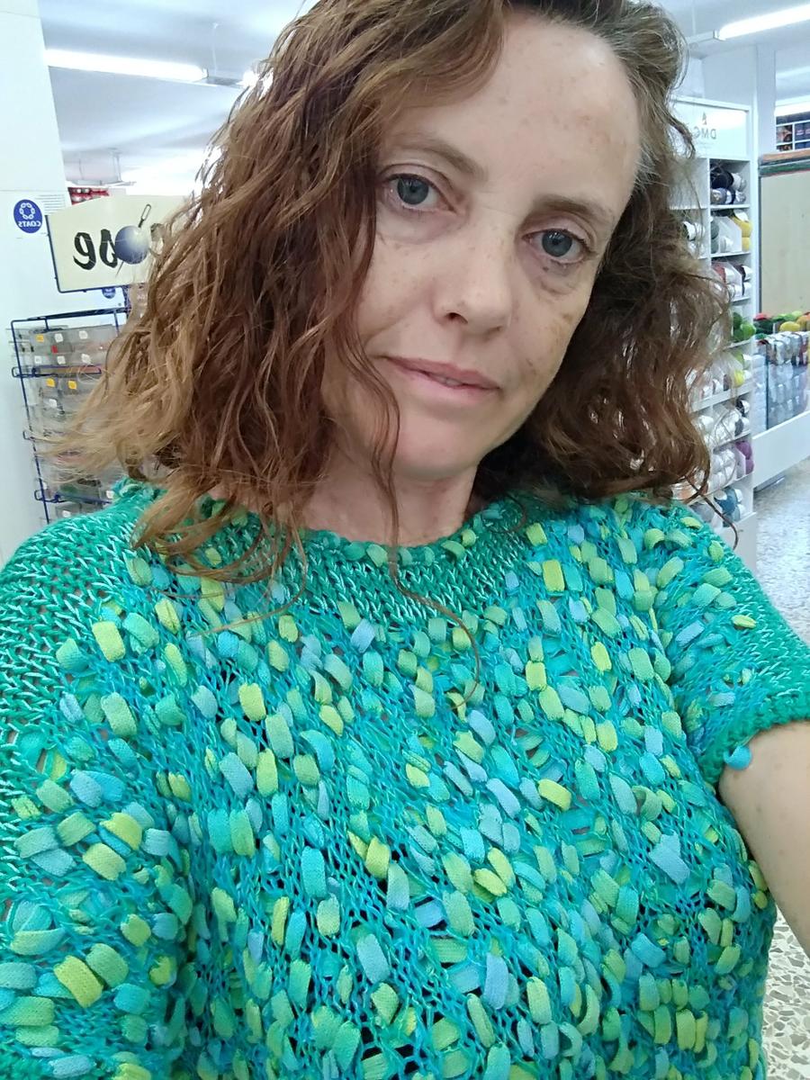 Por eso no creáis que no hecho nada. Entre baño y siesta también he tejido cositas como éste jersey de manga corta de punto.