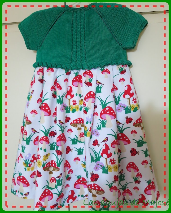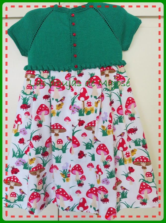 Le puse los botones contrastados en un color de los del vestido, que creo que le dan un aire alegre y desenfadado.