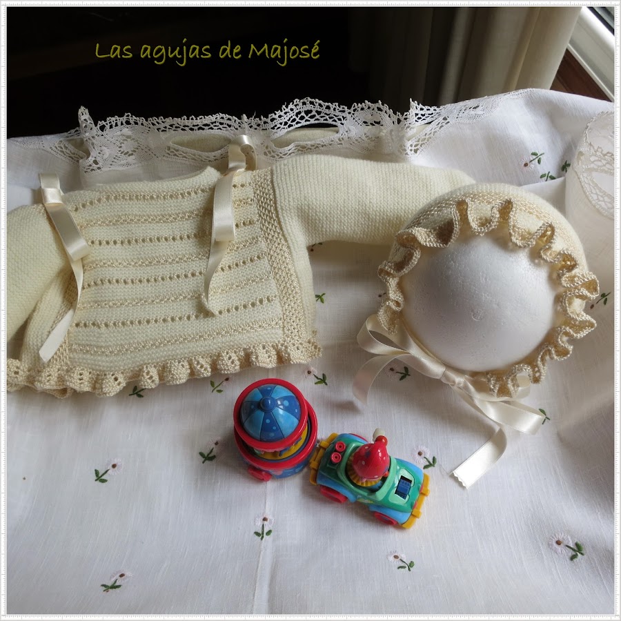 El conjunto está hecho en perlé y lana suavecita, la mamá la prefirió sin perlé.