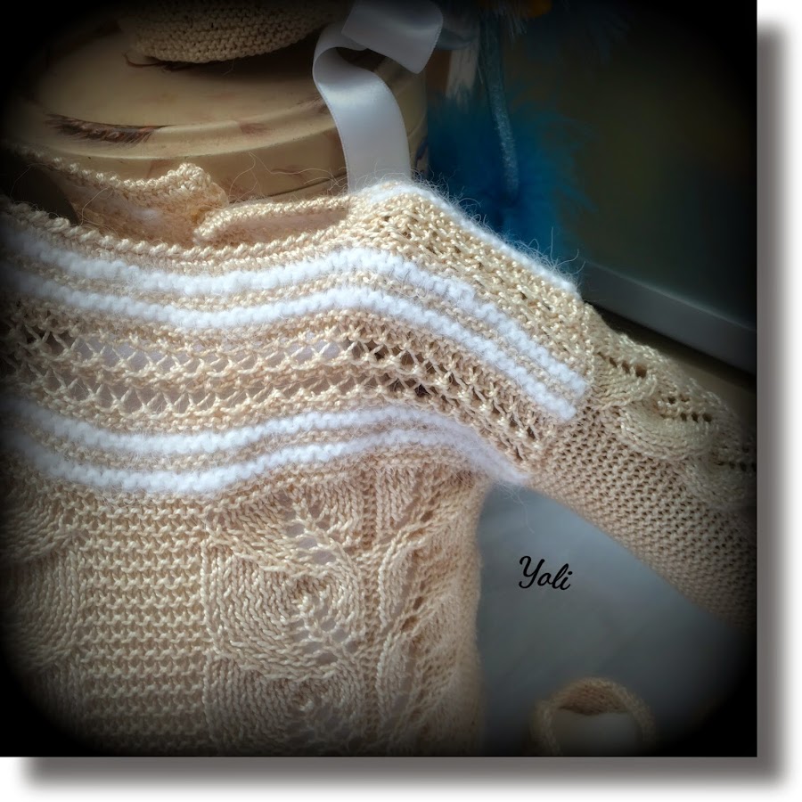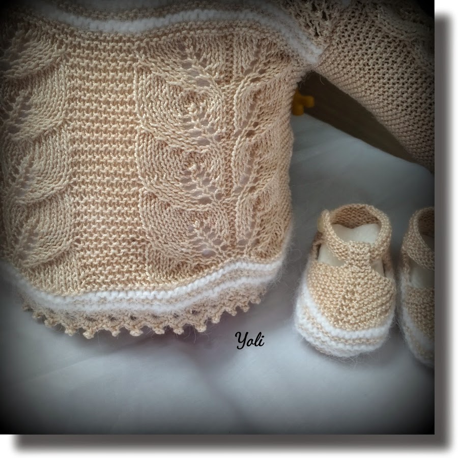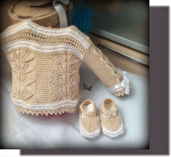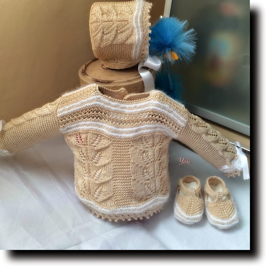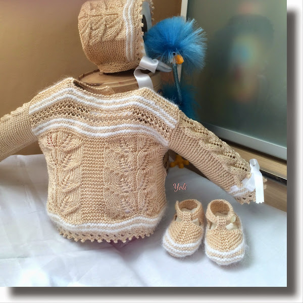Yo por ser Viernes Santo jeje, os traigo un conjunto para EDER, para la salida de la clinica,sera a primeros de agosto, asi que me decidi por tejerlo en perle egipcio y nylgorina blanca, y la talla 0/3 meses para que no saliera disfrazado ajjaja