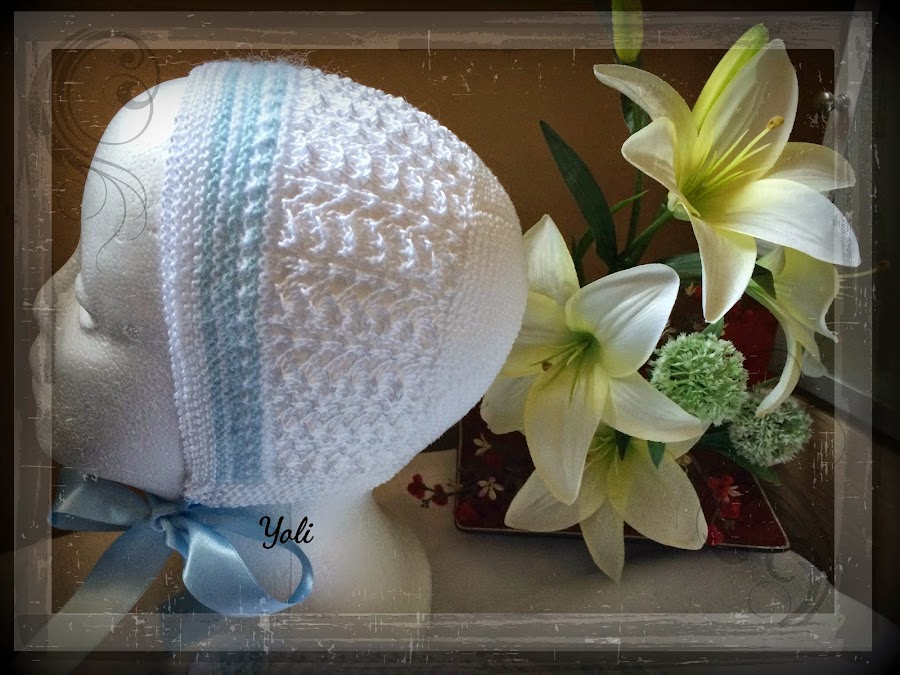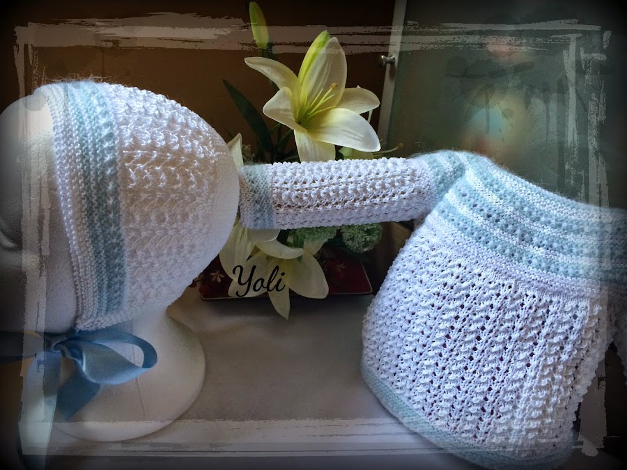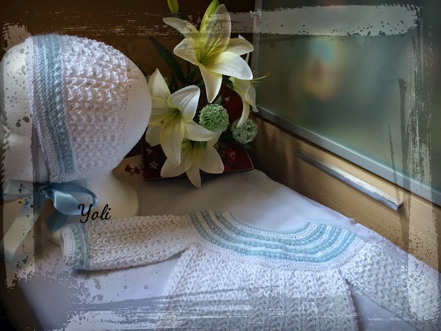 Aqui estoy de nuevo.............con otro modelo en blanco y celeste, otro conjunto para Gaizka , al que ya le queda poquito menos de 1 mes para nacer.