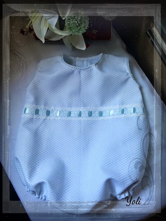 Y este ultimo pelele de pique que os enseño esta sacado de un tutorial de la red, algo modificado eso si!!!! pero quedo monisimo, le tejere una linda chaqueta a tono del lazo y se quedara esperando un dueño, seguro que enseguida sale alguno ajjaja