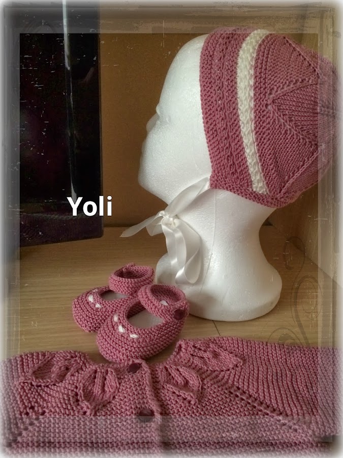 Creo que el modelo lo merece. Trabajado en algodon 100x100 de la marca NATURA, siempre realizo mis trabajos en calidades de primera!! color rosa primavera, combinado con unos dulces toques blanco roto.