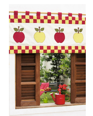 Cortineros con apliques de manzanas para la cocina