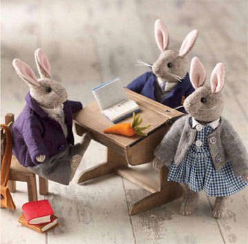 Hola amigas, miren la cosita más bonita y tierna que les vengo a compartir el día de hoy, la familia conejo esta presente, y son conejitos muy estudiosos ya que como verán traen el uniforme de la escuela, y en la mesa esta el cuaderno y su zanahoria jaja.