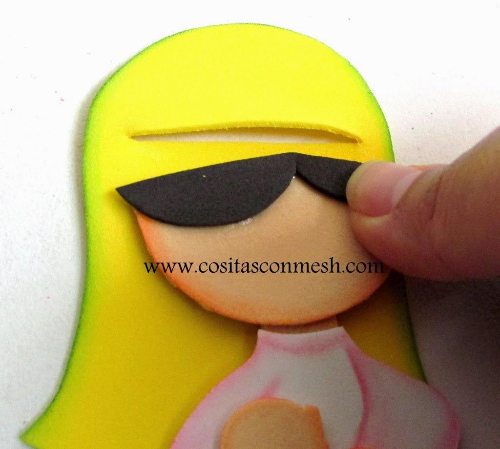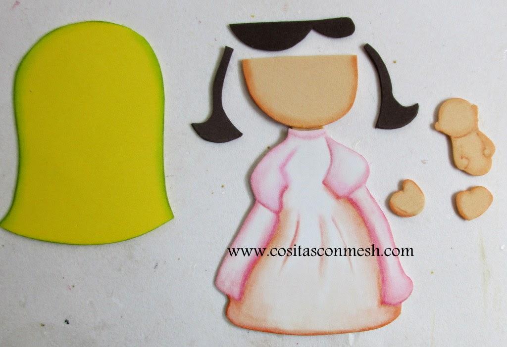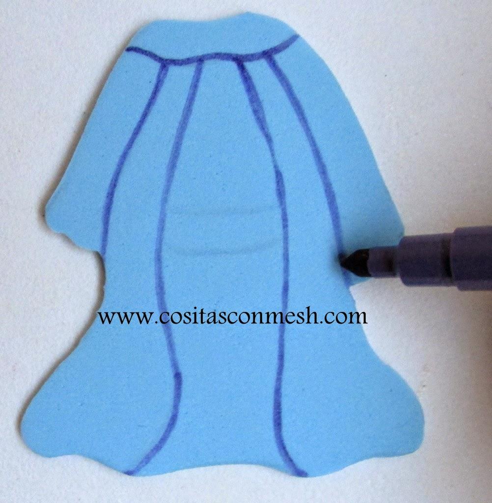 1.-Aprenderemos cómo pintar la goma eva, y así darle movimiento y realce a la ropa y carita de nuestra manualidad.