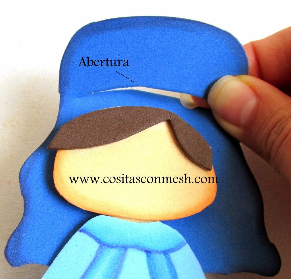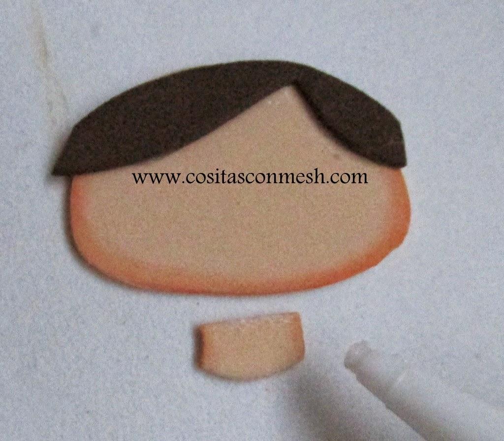 Para la carita de San José, usar goma eva color piel, y plumón naranja para difuminar.