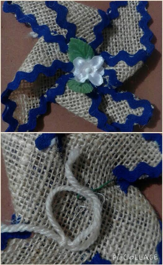 En el centro uní las puntas para con una flor de seda, les amarré un hilo fuerte detrás por el que pasaremos la servilleta y listo! a decorar nuestra mesa bien bonita para nuestros invitados.