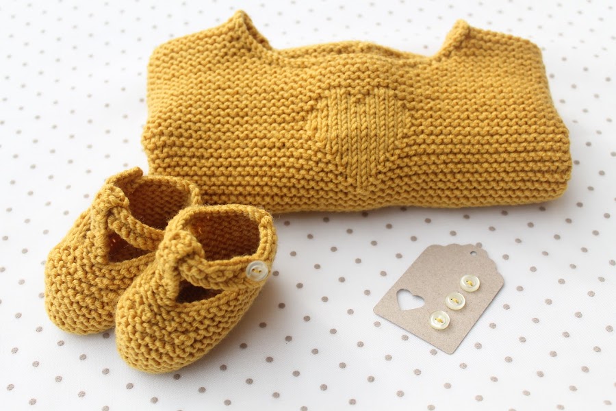Desde entonces he hecho muchas prendas para bebé pero todavía no había tejido ningún conjunto en amarillo y eso que es uno de mis colores favoritos, así que esta me pareció la ocasión perfecta.