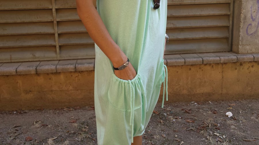 La espalda en principio era recta, pero al ser tan ancho me quedaba muy baja, y así me gusta mucho más con los tirantes hacia el centro.