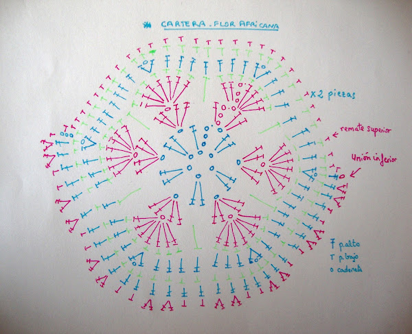 Para tejer la flor podéis repasar el vídeo anterior y después continuar siguiendo los esquemas.