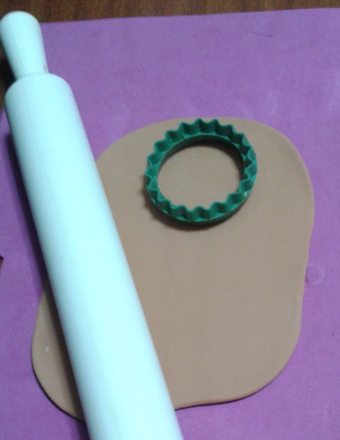 1) Estiro Masa o Porcelana Fría con un rodillo, luego paso otro rodillo texturizador, para darle algo de textura o relive (se pueden usar encajes para texturizar). Y luego con cortador en forma de corazón, realizo mi figura. El color del corazón es fucsia, pero con un toque de rojo para avivar mas el color. A las 12 horas o cuando el corazón haya tomado cierta dureza o consistencia, procedo a colocar el pedacito de cadena, encajando un eslabón en el centro superior de la pieza.