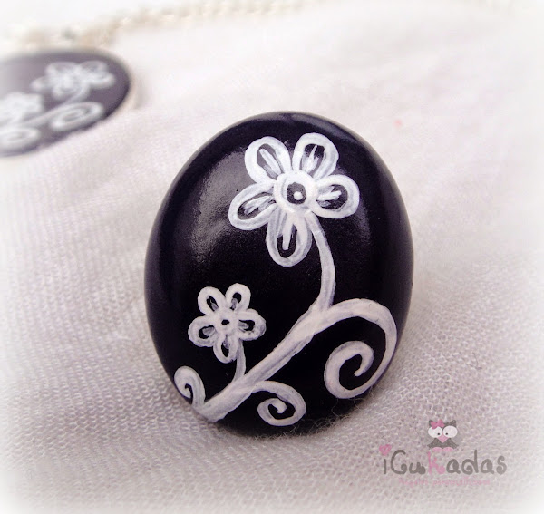 Pendientes de fimo azul marino con flores pintadas a mano.