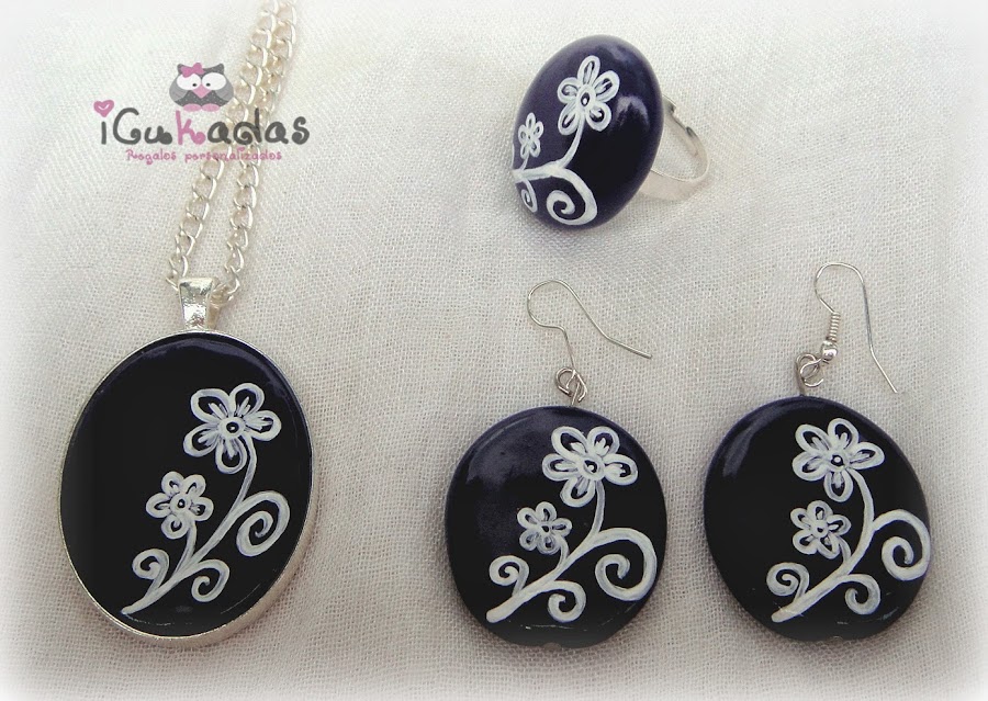 Este pack fue un pedido muy personalizado, querían la funda de movil, el monedero de boquilla, pendientes, anillo y colgante toooodo a juego, en azul..