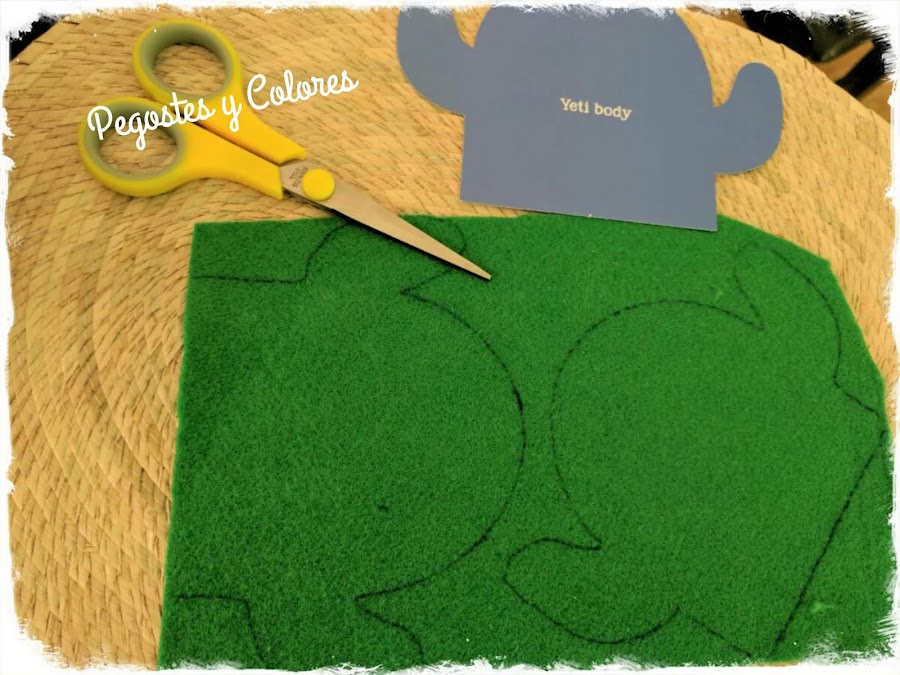 1.- Cortar dos figuras iguales en fieltro verde para el cactus.