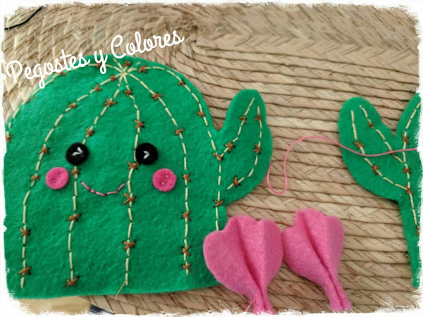 Bueno, pues inspirada por uno de los proyectos que vienen ahi, un cactus, decidi hacer el mio. Claro que modifique un poco el look del original, poniendole las espinas de otra forma y agregandole flores. Las espinas del cactus, las hice siguiendo la idea de la puntada de un precioso aplique de cactus que hizo Mariela del blog Inspirada por mis amores.