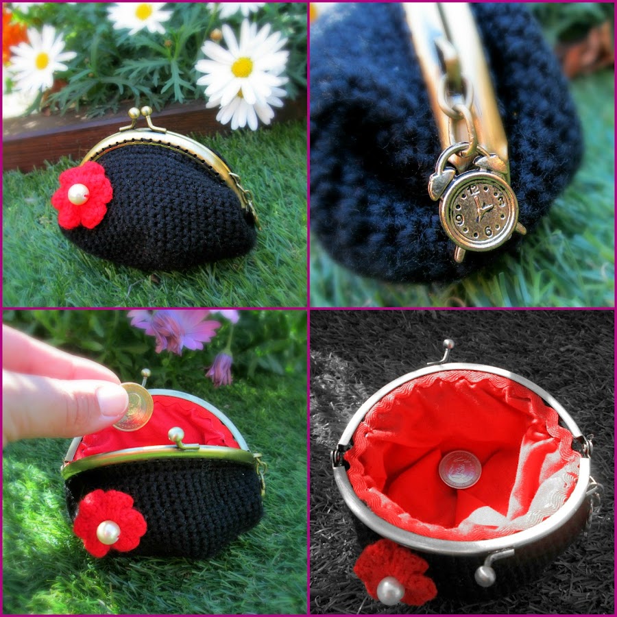 ¡Ya tenía ganas de publicar una entrada! Y os tengo preparadas unas fotos de un monedero que me encargaron, es de ganchillo en color negro y con una flor roja .