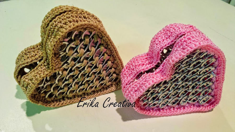 Hola amigas y amigos! Esta vez les presento mis monederos en forma de corazón y regreso a mis orígenes que son las anillas de aluminio. Este corazón me gustó mucho más que el corazón que hice hace aproximadamente 2 años. Es un regalo ideal no sólo para el día de San Valentín sino que para el Dia de las Madres, cumpleaños de alguna amiga, hermana, prima, etc. Bueno, les dejo las fotos y por supuesto el video tutorial. Por cierto, estoy intentando hacer mis videos menos aburridos y agregué música, aparte de una despedida. Cualquier comentario, sugerencia, es bienvenido. Acuérdense que los invito a suscribirse y que sigamos reciclando. Fotos: