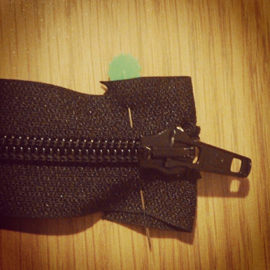 Ahora, abre la cremallera y enfrenta el derecho de la tela con el derecho de la cremallera, cuanto más cerca cosas de la cremallera mejor resultado quedará: