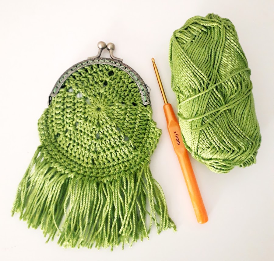 Yo he usado hilo de algodón de la marca Schachenmayr Catania de Mez Fabra , y aguja de ganchillo del número 3. Tu puedes usar lana o también hilo de algodón de más grosor. Eso sí, tienes que tener en cuenta que luego tiene que entrar en la ranura de la boquilla para poder coserla. Por lo cual, no te aconsejo que sea demasiado grueso.