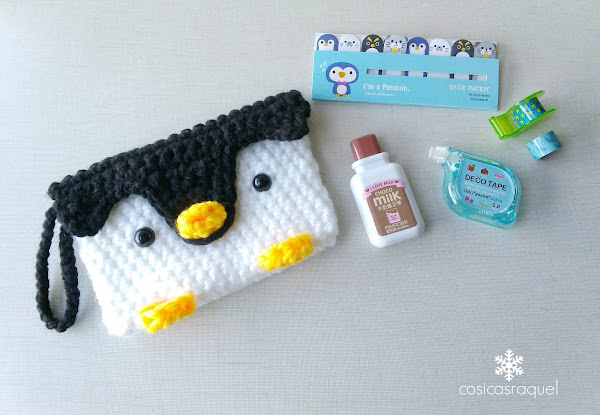 Hola chicas ! después de unos días de relax que me han venido genial vuelvo con uno de los patrones que me habéis pedido ,el monedero de pingüino , bueno la verdad es que puede usarse también de mini bolso o neceser, lo ví en la página de Repeat Crafter Me y me encantó y esa misma tarde lo hice ,si a tí también te encanta aquí te dejo la traducción para que puedas hacerlo.