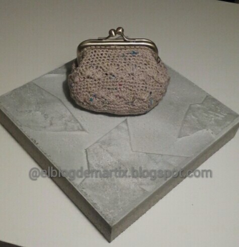 Me puse manos a la obra, haciendo mi propio patrón de un monedero combinando punto bajo y punto abanico con un ovillo vintage de color marrón clarito con esos puntos de colores que le da un toque diferente.