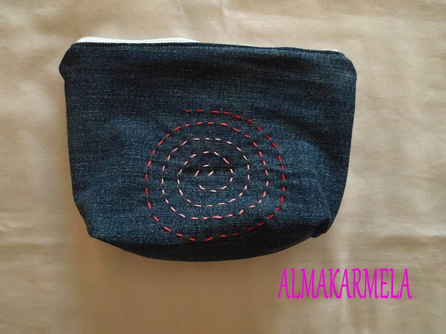 Para decorarlo también he usado la técnica del sashiko, esta vez usando un hilo cuya tonalidad se va degradando, y también ha salido reciclado de unos vaqueros viejos.