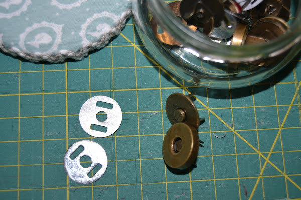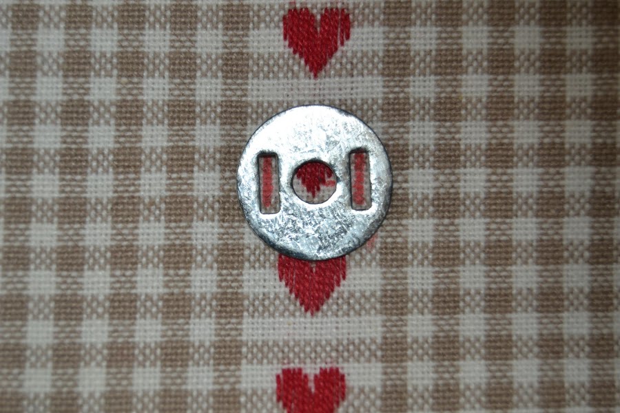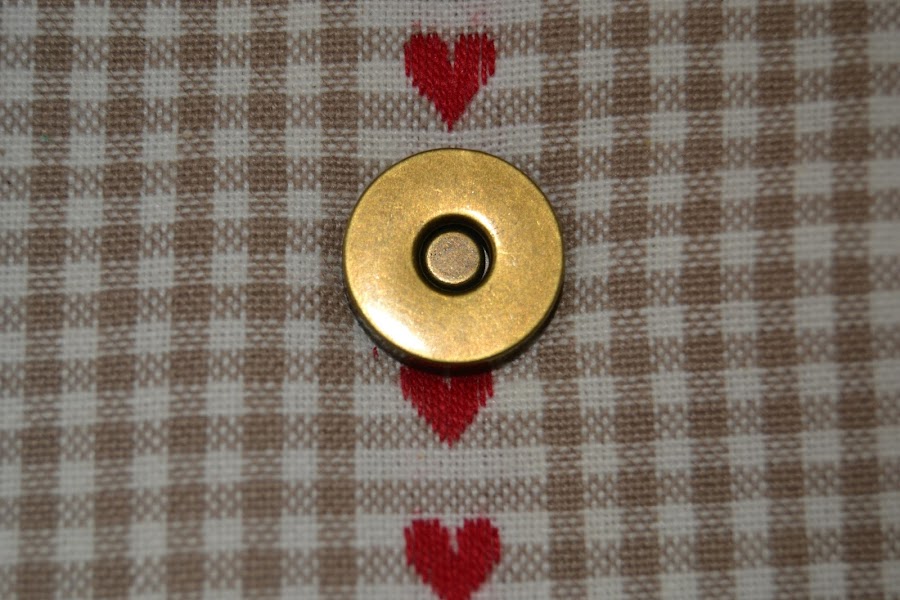 Marcar en la tapa de la cartera que va hacia delante el sitio donde irá el broche. Yo lo he puesto a 4cm del borde y en el centro del alto. Hacer unas marcas con la arandela interna y cortar por ahí: